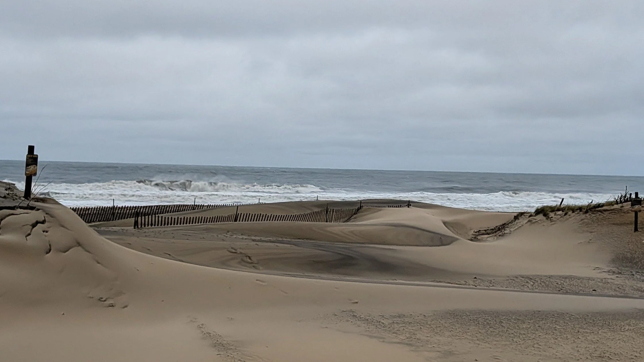 The 2025 October 12-13 Nor’easter. The dune fence proves its worth at the beach openings.